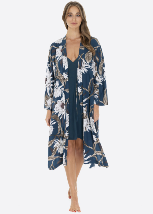 Женский халат Celestine от Lauma украшен цветочным узором и отличается женственным дизайном. Он имеет удлиненный крой, приятный на ощупь материал и завязывается на поясе с внутренней завязкой. По бокам халата есть разрезы, что добавляет ему элегантности.