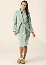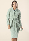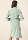 Женский халат Bugatti Paola выполнен в однотонном цвете и имеет длинные рукава. Он изготовлен из более плотной ткани, что делает его особенно уютным и комфортным для ношения. Халат снабжен поясом, который можно завязать на талии, и имеет открытые карманы спереди. Модель на фото имеет рост 176 см и носит размер S.