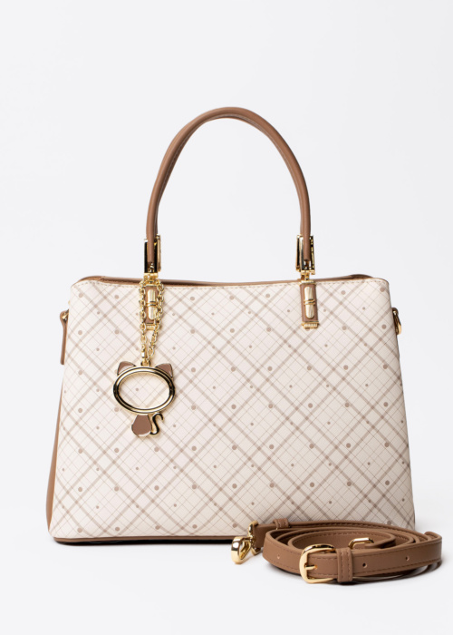 Женская сумка Nabo отличается уникальным и стильным дизайном с клетчатым узором. На передней части сумки находится декоративный элемент, который придаёт ей особое очарование. Внутри сумки предусмотрены карман на молнии и открытые карманы для удобного хранения ваших вещей.