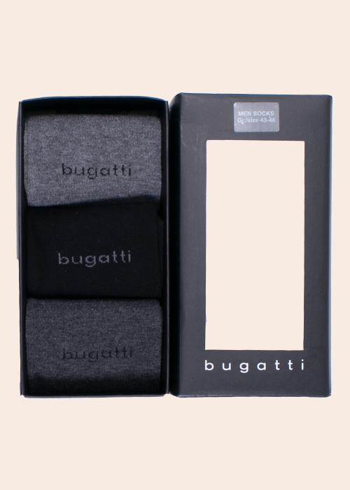 Классические носки Bugatti чрезвычайно удобные и мягкие на ногах, идеально подходят для повседневной носки. Верхний край носков выполнен из широких эластичных резинок, которые удобно удерживают носок на ноге. Индивидуальности придают минималистичные надписи на носках. Набор состоит из трех пар и поставляется в эффектной подарочной упаковке. Материал: хлопок 78%, полиэстер 20%, эластан 2%. Цвет: серый/чёрный