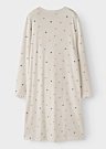 Детская ночная сорочка Name It Kids с принтом в виде сердечек сшита из мягкого, эластичного материала: он приятен к коже и помогает ребёнку чувствовать себя комфортно всю ночь. Круглый вырез и А-образный крой делают посадку аккуратной и удобной, не стесняя движений во сне. Рисунок на ткани добавляет сорочке нежности и выглядит особенно мило.