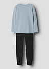 Детская пижама для мальчиков Name It Kids с ярким принтом спереди отлично подойдёт для сна и домашнего отдыха. Модель выполнена в двухцветной расцветке и выглядит аккуратно и стильно. Эластичный пояс обеспечивает удобную посадку, а манжеты в рубчик на рукавах помогают пижаме лучше держать форму.