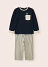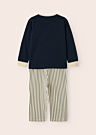 Пижама для мальчиков от Name It Mini имеет стильный дизайн и обеспечивает комфорт. Она оснащена длинными рукавами с манжетами, круглым вырезом и сделана из мягкой, эластичной ткани, которая приятна для кожи. В комплект также входит открытый карман и принт на груди.