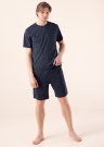 Пижама от Bugatti обеспечит приятный уют спокойными вечерами и крепкий сон! Темно-синяя футболка классического кроя имеет V-образный вырез. Удобный эластичный пояс обеспечивает хорошую посадку клетчатых брюк. Пижамный комплект изготовлен из 100% хлопка, что делает его приятным для кожи! С изделием поставляется удобная многоразовая сумка для хранения. Рост модели 193 см, изделие в размере 52.