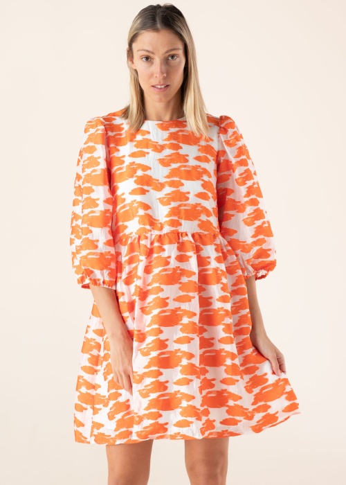 Привлекательное платье Selected Femme отличит тебя от серой массы. Интересный узор платье- рукава 3/4, воздушный и пышное. На концах рукавов резинка, на холке застёжка на пуговицы и слева замок. Внутри подюбник. Блестай и мир ответит тебе улыбкой! Рост модели - 177 см и носит размер 36.