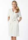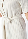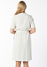 Платье Альона от Hansmark — это стильное и женственное изделие с полосатым узором. Оно имеет короткие рукава и выполнено из легкой, дышащей ткани, что делает его идеальным для теплой погоды. Платье дополнено поясом, который завязывается на талии, пуговицами спереди и открытым карманом сбоку. Модель имеет рост 178 см и носит размер 38.