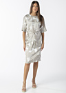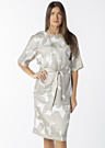 Платье Althea модели Ayla отличается женственным и стильным дизайном. Оно имеет прямой силуэт и круглый вырез, что придаёт ему элегантный вид. Платье красиво драпируется и дополнено поясом, который завязывается на талии. Модель имеет рост 178 см и носит размер 38.