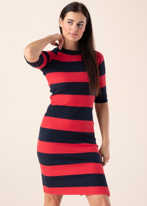 Классное платье Diverse подходит для повседневного ношения. Двухцветное платье- рукава до логтя и обтягивающий покрой. Удобства добавляет эластичность материала , также выразительности добавляет разрез слева. Рост модели - 176 см и носит размер S.