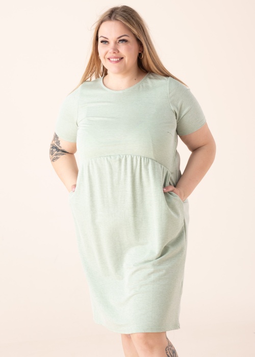 Невероятно удобное платье нежного цвета с короткими рукавами Ciso подходит и для работы, и для досуга. Изделие с застёжкой на пуговицу, расположенную на спинке. Платье отрезное под грудью с оригинальной формой и посадкой. По бокам изделия расположены открытые карманы. Рост модели 167 см. Демонстрируемое изделие размер 38. Длина изделия по спинке для данного размера 106 см. Состав материала: вискоза 60%, полиамид 40%. Цвет: зелёный