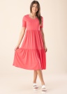 Молодёжное платье JDY подходит для повседневного ношения. Летнее длина Midi платье- приятно мягкое и длина Midi. Юбочную часть составляют расширающиеся воланы , также удобства добавляет эластичность материала. Рост модели - 178 см и носит размер S.
