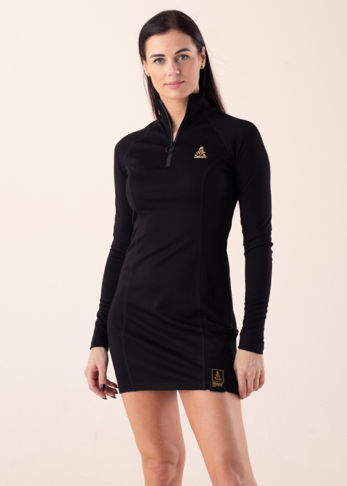 Спортивное мини-платье Diverse, выполненное в минималистском стиле, идеально подходит для женщин, которые любят стильный комфорт. Изготовленное из эластичного материала, платье сливается с телом и свободно движется вместе с ним. Простой дизайн дополнен воротником-соником и проклеиной молнией на груди. Рукава полной длины имеют на концах отверстия для больших пальцев, а спереди украшено логотипом и эмблемой бренда на левой груди и внизу. Отличительный принт с домашним адресом Diverse украшает плечи сзади. Рост модели - 176 см, носит размер S. Длина данного размера - 83 см.
