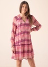 Пёстрое платье Esprit - молодёжный и модный выбор. Летнее и рукава-реглан платье- свободно обвисающее и летящее. На горловине имеет привлекательный волан , на концах рукавов- резинка , также внутри подюбник частичной длины. Рост модели - 178 см и носит размер 36.