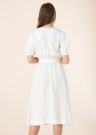 Простое льняное платье Esprit для летного ношения. Тонкое и дышащее платье- v-горловина и длина Midi. Сбоку имеет открытый карман и в середине- резинка , также пояс на завязках. Рост модели - 178 см и носит размер 36.