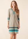 Своеобразное платье EsQualo подходит идеально для повседневного ношения. Классное и v-горловина платье- прямой дизайн и хорошо обвисающее. На внешних поверхностях имеет интересный узор , также выразительности добавляют бусина на горловине. Наслаждайся энергией цветов, поднимающих настроение! Рост модели - 174 см и носит размер S.