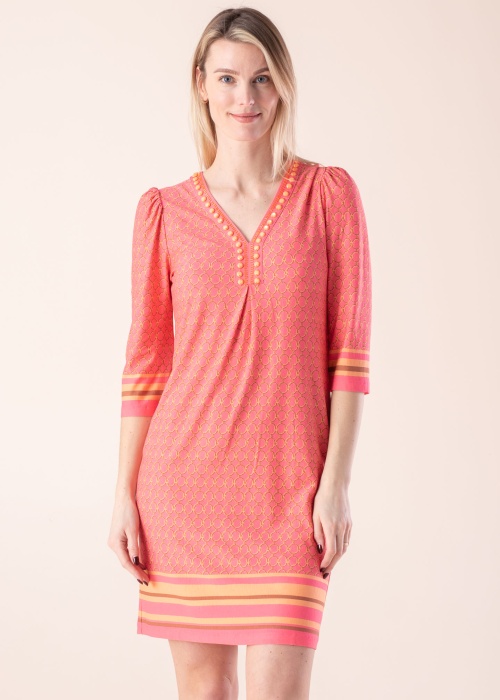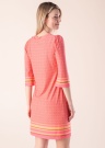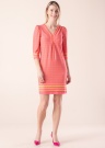 Молодёжное платье EsQualo сделает каждый день особенным. Прямой покрой , в винтажном стиле платье- v-горловина и рукава 3/4. Внимание привлекают декоративная деталь на горловине , также игривый узор добавляет привлекательности. Удобства добавляет эластичность материала. Рост модели - 177 см и носит размер S.