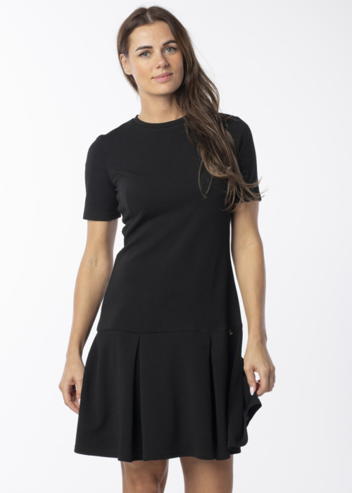 Платье от бренда Denim Dream для женщин представляет собой элегантное и стильное решение для особых случаев. Оно имеет приталенный силуэт и женственный дизайн с круглым вырезом. Эластичная ткань с рельефным узором обеспечивает комфорт и красиво драпируется, а застежка на спине добавляет удобства. Логотип бренда расположен на левой стороне. Модель имеет рост 176 см и носит размер S.