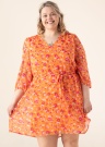 Летнее платье Vila Evoked подходит для дней разного характера. Красивое рукава 3/4 платье - прозрачное летящее и подвижное. На концах рукавов имеет резинка , в середине- завязываемый шнурок , также внутри подюбник. Рост модели - 167 см и носит размер 46.