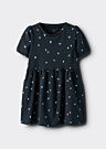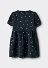 Платье для девочек Fenja от бренда Name It — это очаровательное изделие с круглым вырезом и короткими рукавами. Оно украшено интересным узором и выполнено из легкой ткани, что делает его идеальным как для повседневной носки, так и для особых случаев. Платье имеет стандартный крой и украшено сборками на талии, что придаёт ему женственность и изящество.