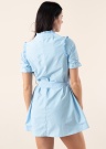 Симпатичное платье Noisy May - молодёжный и модный выбор. Своеобразное и горловина-стойка платье- летнее и тонкое. На передней стороне имеет застёжка на пуговицы , выразительности добавляет привлекательный волан на горловине , также в середине пояс на завязках. Рост модели - 176 см и носит размер S.