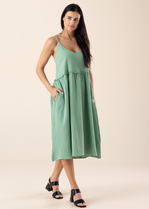 Игривое платье Diverse - простой и стильный выбор на каждый день. Приятно мягкое летнее платье - [] и длина Midi. Выразительности добавляет привлекательный волан в середине , также сбоку открытый карман. Рост модели - 176 см и носит размер S.