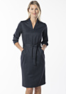 Платье Hansmark для женщин представляет собой классическое и стильное изделие с рукавами длиной три четверти и V-образным вырезом. Оно изготовлено из эластичной и приятной на ощупь ткани, которая отличается прочностью. По бокам предусмотрены карманы, а пояс можно завязать для дополнительного удобства. Модель имеет рост 177 см и носит размер 38.