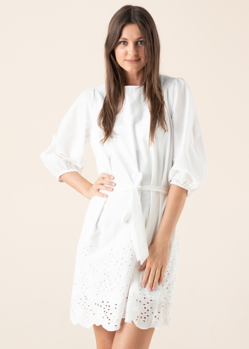 Симпатичное платье Selected Femme подходит для наслаждения летними днями. Минималистичное и рукава 3/4 платье- тонкое и дышащее. На холке имеет пуговица , на рукавах резинка , выразительности добавляет вышивка снизу и внутри подюбник. Рост модели - 177 см и носит размер 36.