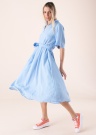 Небесно-голубое платье Rhonda от Selected Femme украшено неподвластным времени полосатым принтом и благодаря эластичности материала идеально ниспадает и грациозно движется. Изящный воротник имеет V-образный вырез, а входящий в комплект пояс помогает отрегулировать платье согласно талии владельца. Рост модели 177 см, изделие в размере 36. Длина по спинке 119 см.