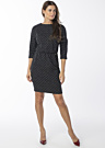 Платье Rimma от Denim Dream — это женственное и праздничное изделие, выполненное в двух цветах. Оно обладает эластичностью, что делает его подходящим как для повседневной носки, так и для более официальных мероприятий. Платье украшено интересным узором и имеет резинку на талии, что подчеркивает фигуру. На левой стороне изделия находится фирменный знак. Модель на фото имеет рост 176 см и носит размер S.