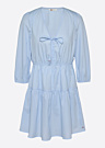 Платье от Tommy Jeans для женщин — это стильный и женственный наряд, который подчеркнет вашу индивидуальность. Оно имеет рукава длиной три четверти и V-образный вырез, что придает образу элегантность и утонченность. Платье дополнено завязывающейся лентой на вырезе, а также резинкой на талии и манжетах, что обеспечивает комфорт и идеальную посадку.