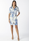 Платье Velli 06 от Denim Dream для женщин выполнено в ретро-стиле с интересным узором. Оно имеет воротник с кантом и короткие рукава. Платье сшито из прочной и эластичной ткани, которая подчеркивает фигуру. Спереди расположена застежка-молния и открытые карманы. Модель имеет рост 178 см и носит размер S.