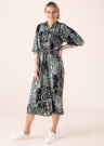 Платье с красивым принтом Vero Moda Gigi прекрасно подходит для смелой женщины, которая не боится это выражать своим стилем. Платье-рубашка с красивым отложным воротом. Полочки с застёжкой на пуговицы, на всю длину платья. На талии расположены шлёвки для тканного пояса, образующего красивый женственный силуэт. Полудлинные летящие рукава добавляют романтичность изделию, а застёжка рукавов на пуговицу создаёт буф эффект. По бокам изделия расположены разрезы, обеспечивающие свободу движения. Шелковистая, мягкая ткань комфортна для тела. Рост модели 178 см. Демонстрируемое изделие размер S. Общая длина изделия по спинке 125 см. Состав материала: переработанный полиэстер 58%, полиэстер 42%. Цвет: зелёный/цветной/узорчатый
