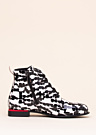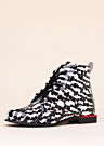 Эффектные и легкие женские полусапоги 2Go Fashion идеально подходят для весенне-осеннего сезона. Сапоги украшены ярким и увлекательным узором, а блестящая поверхность придаёт им особый шарм. Спереди они завязываются шнурками, имеют декоративный элемент на каблуке и застежку-молнию на внутренней стороне.