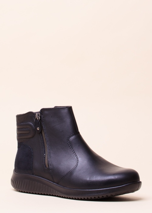 Полусапоги Jomos - классический и удобный. Поверхность изготовлена кожаный. Пяточная часть имеет голографический блеск. Внутреннюю часть покрывает натуральная шерсть и стелька вынимается, при желании. Подошва приятно пружинистая и движется вместе с ногой. Подходят также для более широкой стопы