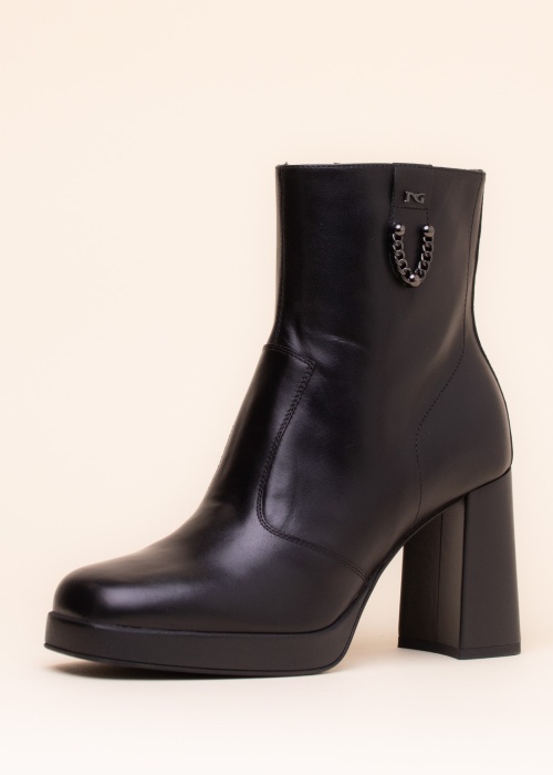 Модные полусапоги от NeroGiardini станут идеальным выбором для стильной женщины. Эти сапоги имеют платформенную подошву и высокий каблук, что придаёт им современный вид. На внешней стороне обуви расположена декоративная цепочка, которая добавляет уникальности дизайну. Также на внешней стороне сапог находится логотип бренда, подчёркивающий их оригинальность. Для удобства ношения на внутренней стороне предусмотрена молния. Задняя часть обуви выполнена с использованием устойчивого блочного каблука.