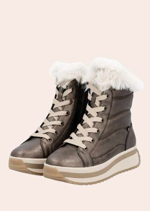 Зимние женские сапоги от Rieker Evolution привлекают внимание своим стильным дизайном и станут отличным дополнением к гардеробу каждой модницы. Они обеспечивают тепло и комфорт благодаря мягкому внутреннему материалу и легкой конструкции. Меховая отделка в верхней части придаёт сапогам особое очарование. Шнуровка спереди и молния на внутренней стороне делают их удобными и практичными для повседневного ношения.