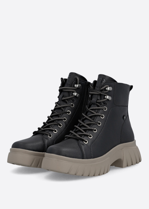 Женские полусапоги Rieker Evolution - это стильный и удобный выбор для повседневной носки. Они оснащены подошвой на платформе и представляют собой модный вариант для молодежи. Спереди имеется шнуровка, а сбоку - молния. На пятке расположено логотип бренда.