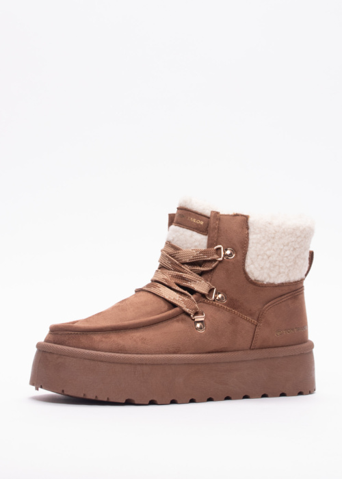 Женские полусапоги Sakura от Tom Tailor — это отличный выбор для стильных и уверенных в себе женщин. Эти сапоги выделяются уютным и оригинальным дизайном, который подчеркнет вашу индивидуальность. Платформенная подошва обеспечивает комфорт и устойчивость при ходьбе. Спереди имеется шнуровка, позволяющая регулировать посадку по ноге. Меховая отделка по краю добавляет тепла и уюта в холодные дни. Декоративные швы на носке и логотип на пятке придают обуви особый шарм и завершенность.