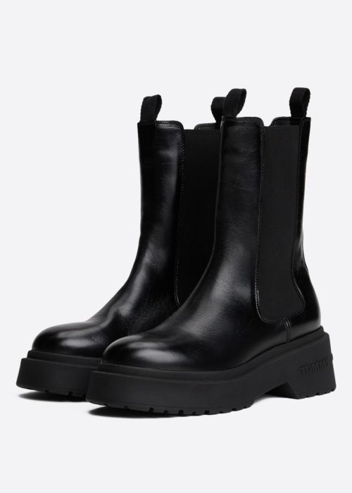 Женские полусапоги Tommy Jeans в стиле chunky — это модная и удобная обувь для повседневного использования. Они имеют подошву на платформе, что придаёт им современный и молодёжный вид. Боковые резиновые вставки обеспечивают комфорт и удобство при носке. На внешней стороне сапог находится логотип бренда, подчёркивающий их оригинальность.
