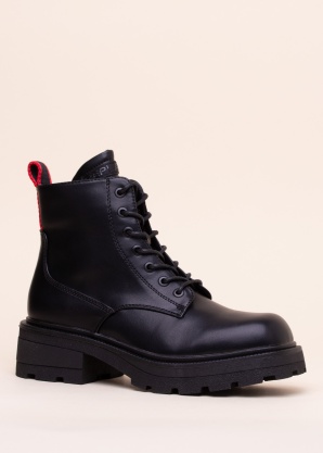 Полусапожки с модным массивным дизайном Replay Ladbrok прекрасно подходят женщине, предпочитающей эффектный, смелый стиль. Минималистической поверхности изделия, из гладкой искусственной кожи, добавляет эффектность квадратный нос и эффектная петля, декорированная названием бренда. Классическая шнуровка. Практичная молния на внутренней поверхности изделия облегчает процесс обувания. Внутренняя отделка выполнена из текстиля, имитирующего замшу. Стелька оснащена технологией Ortholite®, обеспечивающей хорошую циркуляцию воздуха и комфортную мягкость каждого последующего шага. Массивная подошва с глубоким резиновым протектором обеспечивает надёжное сцепление с разными поверхностями. Высота каблука: 5 см. Вес размера 39: 571 г. Цвет: чёрный