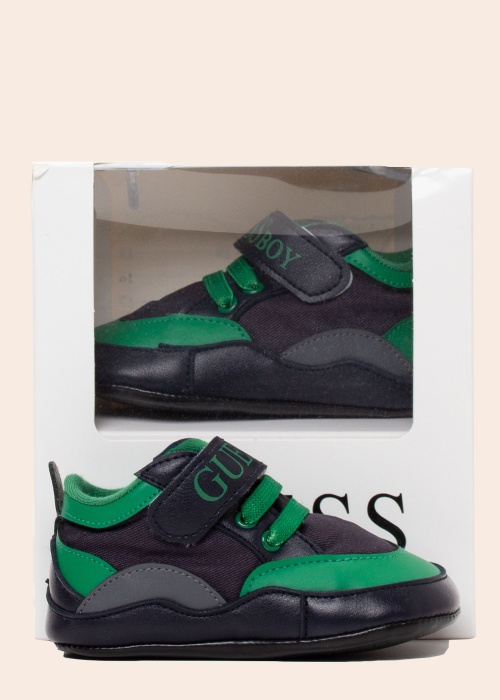 Милые куколки Guess для маленького мальчика. Верхняя поверхность выполнена из комбинации текстиля и мягкого кожзаменителя. Легкая нескользящая обувь с застежкой на пряжку и надписью Guess Boy. Слегка подбитая стелька выполнена из текстиля, а подошва - из кожзаменителя. Вес для размера 19 составляет 31 г. Цвет: темно-синий/зеленый
