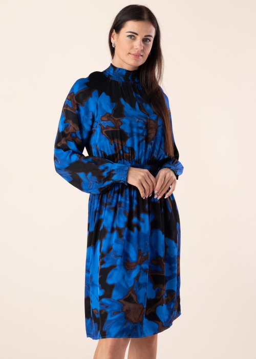 Своеобразное платье Esprit украсит Тебя на празднике или театральным вечером. Привлекательное платье- высокая горловина и интересный узор. В середине имеет резинка , также на холке находится застёжка на пуговицы. Рост модели - 176 см и носит размер 36.