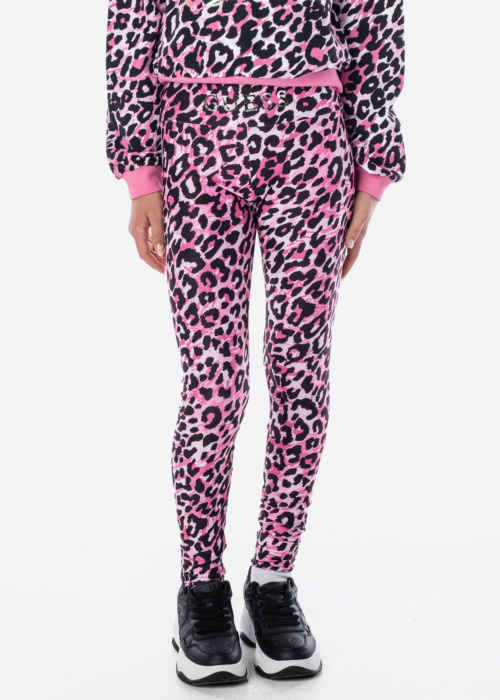 Леггинсы для девочек от Guess отличаются ярким и эффектным дизайном с животным принтом. Эластичный материал обеспечивает комфорт и свободу движений. Стильный логотип бренда Guess на поясе добавляет модный акцент.