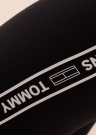 Удобные и минималистичные леггинсы Tommy Jeans хорошо подходят для ношения при занятиях спортом, а также повседневно! Пояс с эластичной резинкой удобно прилегает к телу, с левой стороны маленький логотип бренда. Оригинальности придают по бокам печатные принты с названием бренда, оживляющие скромный внешний вид изделия. Качественная ткань приятно облегает тело и обеспечивает максимальный комфорт при движении. Переработанный полиэстер составляет как минимум 50% из использованного при изготовлении одежды полиэстера.. Рост модели 176, носит размер S. Материал: полиэстер 73%, вискоза 23%. Цвет: чёрный.