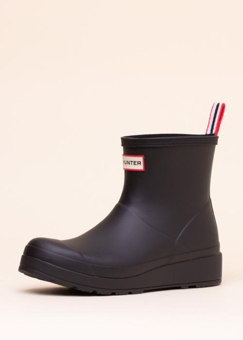 Женские резиновые сапоги Hunter Play Boot — это удобная обувь с мягкой стелькой, которая станет практичным спутником в весеннюю, летнюю и осеннюю погоду. На передней части сапог находится фирменная этикетка бренда.