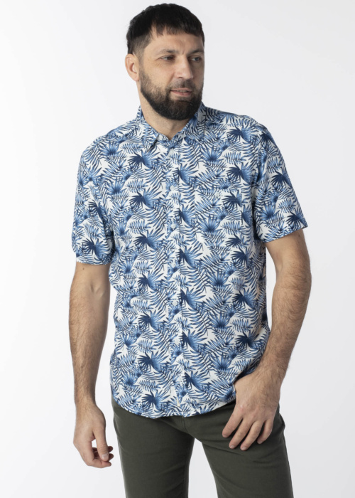 Рубашка для мужчин от Blend выделяется стильным узором и привлекательным дизайном. Она имеет застежку на пуговицах, короткие рукава и нагрудный карман с пуговицей. Материал рубашки легкий, тонкий и хорошо пропускает воздух. Модель на фото имеет рост 188 см и носит размер L.