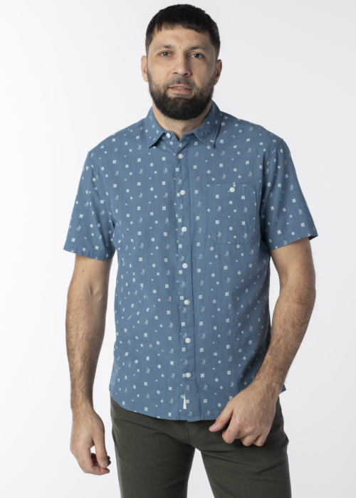 Blend meeste triiksark aros - это стильная рубашка с закруглённым краем и пуговицами спереди. Она украшена ярким узором и имеет короткие рукава, что придаёт ей современный вид. Мягкая ткань хорошо ложится по фигуре, а также есть карман на груди. Модель имеет стандартный крой Regular Fit. Рост модели составляет 188 см, и она носит размер L.