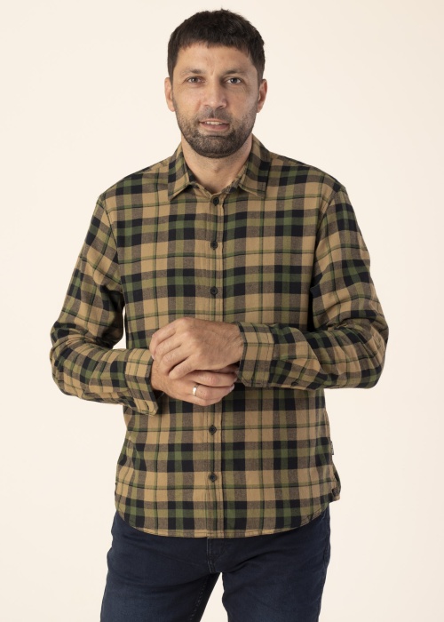Мужская рубашка от Blend выполнена в ретро-стиле с клетчатым узором, что придаёт ей уникальный вид. Она оснащена воротником с кантом и сделана из более плотной ткани, что делает её отличным выбором для стильного мужчины. Рубашка застёгивается на пуговицы спереди и на манжетах, а также имеет классический крой для комфортной посадки. Изделие изготовлено из хлопка, выращенного с соблюдением ответственных стандартов и сертифицированного BCI. Модель на фото имеет рост 188 см и носит размер L.