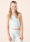 Спортивный топ от Guess изготовлен из очень эластичного материала, при изготовлении которого была использована антибактериальная технология, которая помогает поддерживать чистоту и свежесть, предотвращая появление неприятных запахов. Силиконовый логотип бренда находится на груди укороченного топа. Рост модели 146 см, изделие в размере 136.