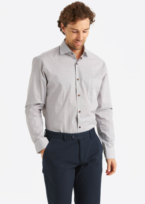 Эрла из Швеции предлагает мужскую рубашку, которая отличается стильным и элегантным дизайном. Она имеет аккуратную застежку на пуговицы спереди и на манжетах. Эта рубашка идеально подходит для создания как делового, так и повседневного образа.