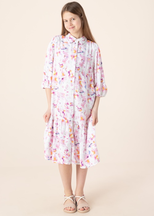 Стильное рубашка-платье Name It Kids подходит для повседневного ношения. Современное покрой Loose Fit рубашка-платье- рукава 3/4 и длина Midi , также в качестве дополнительного плюса товар - хорошо обвисающий и подвижный. Спереди имеет застёжка на пуговицы , на концах рукавов- резинка , также игривый узор добавляет привлекательности. Рост модели - 154 см и носит размер 152.